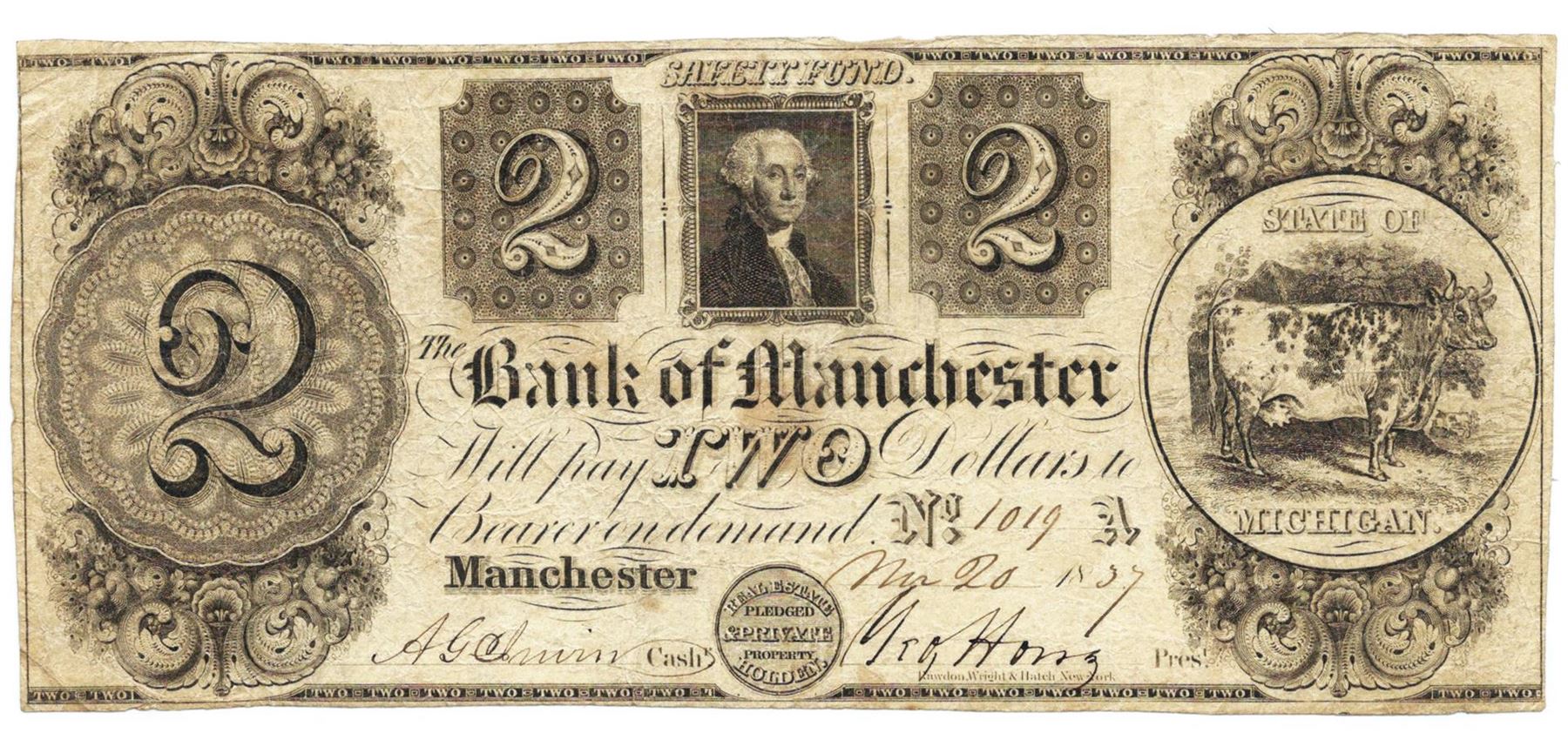 One 1839 $2 Bank of Manchester, Manchester, MI Bank Note