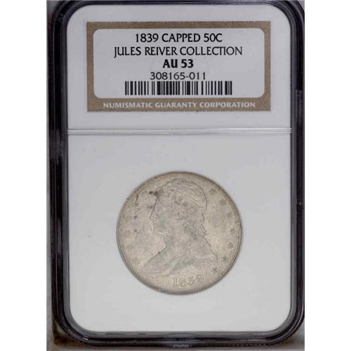 1839 50C AU53 NGC. JR-6b, R.1. Lumps are seen in the f 1839[50C] AU53 NGC.