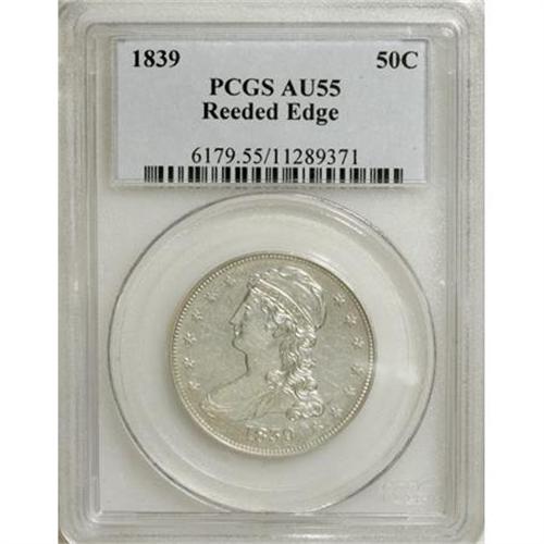 <B>1839 50C AU55 PCGS.</B></I> PCGS Population (41/121). NGC Census: (37/175). Mintage: 1,392,976. Numismedia Wsl. Price for NGC/PCGS coin in AU55: $421. (#6179)<BR><BR><b>Shipping:</b> Coins & Currency (<a target="_blank" href="http://www.heritageauctions.com/common/shipping.php">view shipping information</a>)