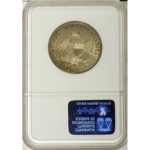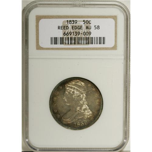 <B>1839 50C AU58 NGC.</B></I> Solidly struck with just a hint of highpoint friction. The still-lustrous fields are rose-gold in the center with violet, midnight-blue, and turquoise-green at the periphery.<BR><BR><b>Shipping:</b> Coins & Currency (<a target="_blank" href="http://www.heritageauctions.com/common/shipping.php">view shipping information</a>)