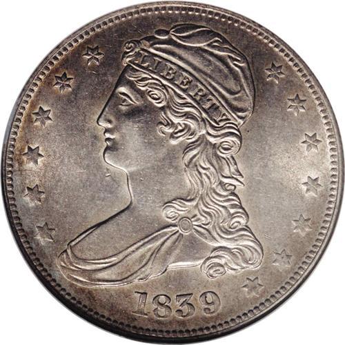 1839 50C AU58 NGC. The 9 of the date is slightly recut 1839[50C] AU58 NGC.
