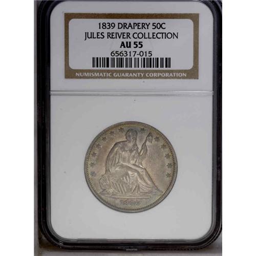 1839 50C Drapery AU55 NGC. 1839 was the first year of 1839[50C] Drapery AU55 NGC.
