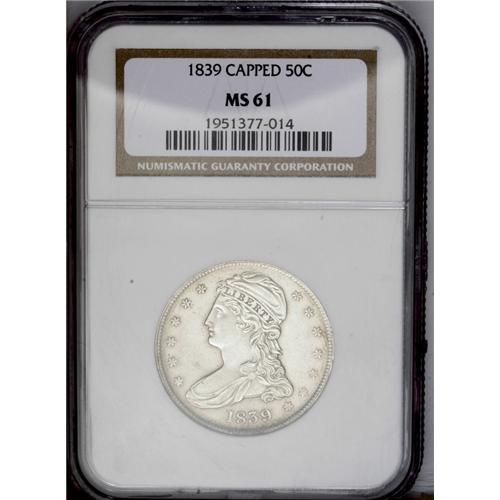 1839 50C MS61 NGC. Bright and satiny with a few flecks 1839[50C] MS61 NGC.