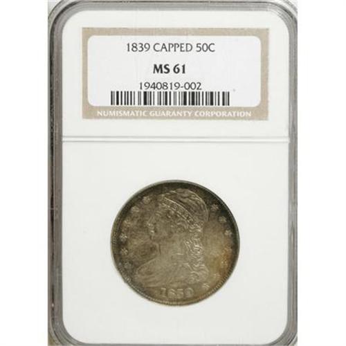 <B>1839 50C MS61 NGC.</B></I> A rich coating of golden-brown and red-brown patina embraces both sides of this lustrous Mint State example. Most of the design elements are well struck, with the exception of two or three obverse stars and ST in STATES. Few surface marks are observed, for the grade. <BR><BR><B>Coin Engraver:</B> Christian Gobrecht<BR><BR><b>Shipping:</b> Coins & Currency (<a target="_blank" href="http://www.heritageauctions.com/common/shipping.php">view shipping information</a>)