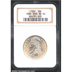 1839 50C MS64 NGC. Reeded Edge Halves are a difficult type to locate in high grade, and it seems the