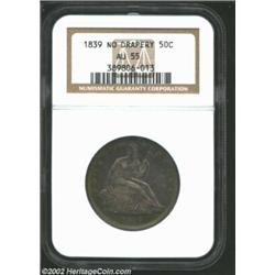 1839 50C No Drapery AU55 NGC. Beautifully toned in concentric iridescent shades of orange, turquoise, and steel-violet. A more perfect About Uncirculated representative of this difficult first year type is difficult to imagine. Ex: W. Earl Spies Collection (Stack's, 12/74), lot 720; Queller Family Collection (Stack's, 10/02), lot 452. Important notice: We expect to be auctioning lots at the rate of 200-250 per hour. Sometimes eBay Premier live bid software cannot keep up with that pace, so we strongly recommend that you place a realistic proxy bid now as insurance to avoid disappointment. Also please note that all Heritage/CAA lots purchased through eBay Premier carry a 20% Buyer's Premium. Please make sure you read the Terms and Conditions.