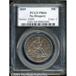 <table><tbody><tr><td><table> <TR><TD width="100%"><TABLE cellSpacing=1 cellPadding=3 width="100%" border=0><TBODY><TR><TD width="100%" bgColor=#79735c><FONT face=arial color=#ffffff size=3><B>Description</B> </FONT></TD></TR><TR><TD width="100%" bgColor=#ffffff><FONT face=arial size=2><B>1839 50C No Drapery PR64 PCGS.</B></I> Proof examples of the 1839 half dollar were allegedly struck on August 13, 1839. One proof and one business strike were sent by Mint Director Patterson to the Secretary of Treasury and were distinguished as special strikings in a letter between the two officials even though the word "proof" was not used. Whether one believes there are 3-4 proofs known of this issue or "less than 6," as Wiley and Bugert state, the fact is this is an extreme rarity.<BR>There are a couple of curious attributes on all proof 1839 halves, and this coin in particular. First, all are struck from a reverse die that shows a die crack of considerable length on the lower reverse. Some are struck from an even later state of the reverse die and display a bisecting crack by the lowest olive leaf that continues to the R in AMERICA and the rim. However, this particular coin does not display that second crack, and it was the opinion of the cataloger at Bowers in August of 1999 that this particular coin (the Reed Hawn specimen) is the only proof that does not show the second, bisecting crack. A second curiosity is what appears to be partial drapery below Liberty's elbow. This was not mentioned in the Rarities Sale from 1999, but we feel compelled to do so as it is quite obvious. While it appears at first glance that this is a Partial Drapery coin and the drapery has been mostly effaced, this cannot be as No Drapery coins are diagnostically different from Drapery halves of 1839. On No Drapery coins, the most obvious difference is the positioning of the rock relative to star 1: it is much closer on the No Drapery halves, and considerably farther apart on the With Drapery pieces. Then what is it that is seen just below Liberty's elbow? We believe it is light die clashing from the reverse, perhaps the faint impression of a feather from the eagle that was not polished away prior to striking.<BR>The coin itself has deeply reflective fields and it is obviously a proof striking even though heavily toned. The devices show pinpoint striking definition, obviously having been struck multiple times to bring up the details seen here. Each side is covered with rich blue, slate-gray, and citrine toning with slight evidence of underlying hairlines from an old cleaning. Easily distinguished for pedigree purposes by the spot over the right side of the N in UNITED on the reverse. While it is pure speculation, it is possible that the lack of the second die crack on this coin could indicate this is the very coin Robert Maskell Patterson sent to the Secretary of the Treasury in 1839.<BR><I>Ex: Reed Hawn Collection (Stack's, 1973), lot 125; Long Beach Connoisseur Collection (Bowers); Rarities Sale (Bowers and Merena, 8/99), lot 200.</B></I> </FONT></TD></TR></TBODY></TABLE></TD></TR></TBODY></TABLE><BR><A name=PricesRealized></A><TABLE cellSpacing=0 cellPadding=0 width="100%" bgColor=#000000 border=0><TBODY><TR><TD width="100%"><TABLE cellSpacing=1 cellPadding=3 width="100%" border=0><TBODY><TR><TD width="100%" bgColor=#79735c><A name=PR><FONT face=arial color=#ffffff size=3><B>Previous Prices from Heritage Auctions</B> </FONT></A></TD></TR><TR><TD bgColor=#f6f6ed>No Prior Data Recorded </TD></TR><TR><TD bgColor=#ffffff><FONT face=arial size=1 ?>PLEASE NOTE: All prices realized reflect the final hammer price PLUS the buyer's premium in auctions that charge a buyer's premium. Each item has a notation at the top of the listing indicating whether that lot included a buyer's premium. Example: A item that sells with a final hammer price of $100 and a 20% buyer's premium will display with a price realized of $120. All information listed is intended to be as accurate as possible, but errors are possible. Please use this guide carefully and inform us of any inaccuracies. </FONT></TD></TR></TBODY></TABLE></TD></TR></TBODY></TABLE><BR><TABLE cellSpacing=0 cellPadding=0 width="100%" bgColor=#000000 border=0><TBODY><TR><TD width="100%"><TABLE cellSpacing=1 cellPadding=3 width="100%" border=0><TBODY><TR><TD width="100%" bgColor=#79735c colSpan=6><FONT face=arial color=#ffffff size=3><B>Price Guide*</B> </FONT></TD></TR><TR bgColor=#f6f6ed><TD align=middle><B>Grade</B> </TD><TD align=middle><B>Coin World<BR>(Trends)</B> </TD><TD align=middle><B>Numismedia<BR>Retail</B> </TD><TD align=middle><B>Numismedia<BR>Wholesale</B> </TD><TD align=middle><B>Coin<BR>Universe</B> </TD><TD align=middle><B>Heritage<BR>Value Index</B> </TD></TR><TR bgColor=#ffffff><TD align=middle>63</TD><TD align=right>---</TD><TD align=right>---</TD><TD align=right>---</TD><TD align=right>---</TD><TD align=right>$135,000.00</TD></TR><TR style="FONT-WEIGHT: bold" bgColor=#cccfdd><TD align=middle>64</TD><TD align=right>---</TD><TD align=right>---</TD><TD align=right>---</TD><TD align=right>---</TD><TD align=right>---</TD></TR><TR bgColor=#ffffff><TD align=middle>65</TD><TD align=right>---</TD><TD align=right>---</TD><TD align=right>---</TD><TD align=right>---</TD><TD align=right>---</TD></TR><TR bgColor=#ffffff><TD colSpan=6><FONT size=1>*All information listed is intended to be as accurate as possible, but errors are possible. No item may be returned or refused based on this information which is provided as a service to our customers. You should contact each pricing source directly to determine the accuracy of this information. </FONT></TD></TR></TBODY></TABLE></TD></TR></TBODY></TABLE><BR><TABLE cellSpacing=0 cellPadding=0 width="100%" bgColor=#000000 border=0><TBODY><TR><TD width="100%"><TABLE cellSpacing=1 cellPadding=3 width="100%" border=0><TBODY><TR><TD width="100%" bgColor=#79735c><FONT face=arial color=#ffffff size=3><B>Population Guide</B> </FONT></TD></TR><TR 