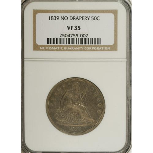 1839 50C No Drapery VF35 NGC. NGC Census: (20/109)
