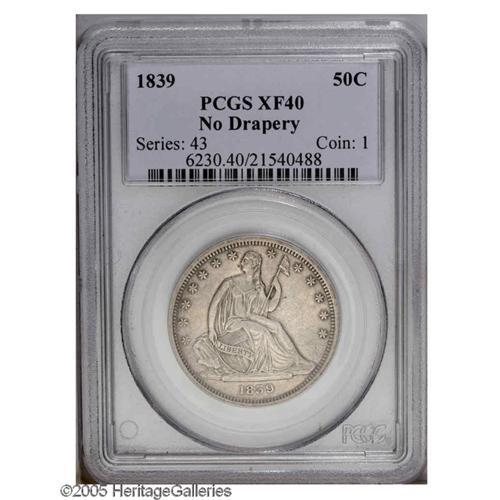 1839 50C No Drapery XF40 PCGS. Gray throughout with am 1839[50C] No Drapery XF40 PCGS.