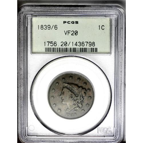 1839/6 1C VF20 PCGS. N-1, High R.3. Noyes Die State C,