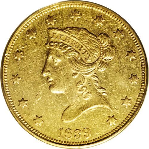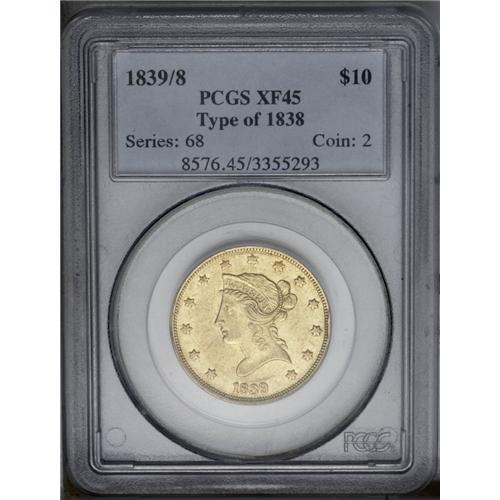 1839/8 $10 Type of 1838, Large Letters XF45 PCGS. The