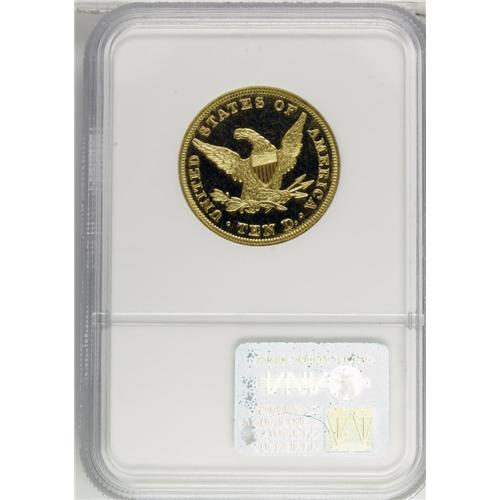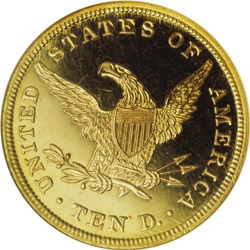 <B>1839/8 $10 Type of 1838 PR67 Ultra Cameo NGC.</B></I> This is an amazing opportunity for the advanced collector, the connoisseur of early American gold coinage, or the numismatist who appreciates the combination of quality and rarity. This masterpiece is the finest of just three proofs known, and one of just two examples available to collectors. Three additional proofs are known for the 1838 eagle, bringing the total population to six coins for this first design type. One of each date is held by the Smithsonian Institution, and the other four are available to collectors. This specimen is the finest of all six known proofs of this first Liberty Head eagle design.<BR> In the Eliasberg catalog, Dave Bowers wrote: "The 1839 Large Letters or Type of 1838 eagle has traditionally been one of the most desired issues in the series. Specimens are very elusive in high grades, and in proof grade this piece ranks as one of the most important rarities in the field of American numismatics. A marvelous opportunity for the specialist."<BR><BR><B>Previous Discussions</B></I><BR><BR>Walter Breen wrote in his <I>Encyclopedia of United States and Colonial Proof Coins:</B></I> "Large Letters, type of 1838. Date low, to left, many die file marks near rev. border. (1) Smithsonian, from Mint collection. (2) Parmelee: 1097 to Chapman, Jenks: 5735, John H. Clapp, now in Eliasberg collection. No rumor of a third specimen."<BR> A decade later, the same author mentioned the third specimen in his <I>Complete Encyclopedia:</B></I> "East European pvt. coll., 1981, Mark Emory for NERCG, in a proof set including $2 1/2 and $5."<BR> In <I>United States Gold Coins, An Analysis of Auction Records,</B></I> David Akers commented briefly: "There are only two known proofs, one in the Smithsonian Institution and the other in the Eliasberg Collection." His 1980 reference was published just a year before the third example was discovered.<BR> Recently, Jeff Garrett and Ron Guth wrote <I>Encyclopedia of U.S. Gold Coins, 1795-1933,</B></I> published in 2006. Every U.S. gold issue, business strikes and proofs, was given a third page of space. For this proof issue they wrote: "The Proof 1839, Type of 1838 eagle is an exceedingly rare coin of which only three examples are known. The first is the PF-66 deep cameo in the Smithsonian Institution, obtained in the year of issue as were virtually all of the Proof gold coins in that collection (the only exception being additions from the Lilly Collection.) The second example (and the finest of the three) is the Eliasberg Proof coin that later sold as an NGC PF-67 ultra cameo in a 1999 auction for $690,000. The third examples is a PF-61 listed in the PCGS Population Report, a coin that reportedly came out of Eastern Europe in 1981, along with a Proof quarter eagle and half eagle."<BR><BR><B>Historical Commentary</B></I><BR><BR>According to the Mint Act of 1792, the ten dollar gold piece was declared the unit of all gold coinage and was named the eagle. Smaller gold denomination coins were called the half eagle and the quarter eagle.<BR> Once gold coinage actually began in 1795, the eagle remained in use only for a decade, being discontinued in 1804 in favor of the half eagle. Much of this had to do with the increasing price of gold and the extremely limited production of gold coins by the Philadelphia Mint. Gold value eventually exceeded face value for all of the gold coins.<BR> For many years, the half eagle was the denomination of choice among those who deposited gold with the mint. Few depositors requested eagles and even fewer asked for quarter eagles. In 1804, President Thomas Jefferson halted production of both the eagle and the silver dollar. It was another 30 years before the Philadelphia Mint coined another 10 dollar piece, in 1834. The "1834" eagles were actually dated 1804, and were produced for inclusion in special presentation sets to be given to foreign monarchs such as the King of Siam.<BR> Finally, full scale production of gold eagles resumed in 1838 by order of the Secretary of the Treasury, a few years after the standard weight for gold coinage was reduced to levels that brought gold value and face value back in line. With an internal supply of gold discovered in Georgia and the Carolinas a few years earlier, the necessity of a larger gold coin became evident.<BR> Christian Gobrecht created the Liberty Head design, the first style used only in 1838 and 1839, before slight modification. The second head style remained in use from 1839 through 1907. In the earliest years of this design, few proofs were coined, usually only upon request by an occasional collector, or by government authority for presentation purposes. Today, less than 40 proof eagles are known for the entire two decades from 1838 to 1857, and this total includes a dozen such pieces in the Smithsonian Institution.<BR><BR><B>The Design</B></I><BR><BR>The Liberty Head design was created by Christian Gobrecht who is best known for his silver dollar design of 1836. During his brief tenure at the Mint's engraving shop, Gobrecht also created the Braided Hair design for half cents and large cents, as well as similar designs for several pattern issues.<BR> The obverse has a bust of Liberty facing to the left, with her hair bound into a triple bun at the back, and held in place by a beaded cord. A coronet or crown in her hair is inscribed with the word LIBERTY. The bust truncation is smoothly curved, forming a sharp point at the back. Thirteen stars are placed just inside the obverse border, beginning at 7 o'clock, clockwise to 5 o'clock. The 1839 date is placed below the bust.<BR> For the reverse design, Gobrecht chose an eagle with its wings reaching skyward, gazing to the West. The eagle holds an olive branch in its dexter claw and three arrows in its sinister claw. A shield covers the eagle's breast, composed of six vertical two-line stripes and nine horizontal crossbars. The statutory legend UNITED STATES OF AMERICA f
