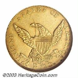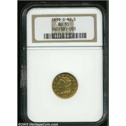 <table><tr><td><TABLE cellSpacing=0 cellPadding=0 width="100%" bgColor=#000000 border=0><TBODY> <TR><TD width="100%"><TABLE cellSpacing=1 cellPadding=3 width="100%" border=0><TBODY><TR><TD width="100%" bgColor=#79735c><FONT face=arial color=#ffffff size=3><B>Description</B> </FONT></TD></TR><TR><TD width="100%" bgColor=#ffffff><FONT face=arial size=2><B>1839-C $2 1/2 AU55 NGC.</B></I> Recut 39, Winter 3-C, McCloskey-C, R.3. The 3 in the date is boldly repunched north, and the 9 is also strongly recut. The second of only two years of Charlotte Mint production of Classic Quarter Eagles, and in addition the final year that the mintmark appeared above the date on the obverse rather than above the denomination on the reverse. A late die state with spindly die cracks (as made) through the 3 in the date, through the second and ninth stars, across the eagle's beak, above the left (facing wing, and through the 2 in the denomination. The strike is relatively sharp, and there are no obtrusive abrasions. A small contact mark behind Liberty's ribbon above the final star will pedigree this example. </FONT></TD></TR></TBODY></TABLE></TD></TR></TBODY></TABLE><BR><A name=PricesRealized></A><TABLE cellSpacing=0 cellPadding=0 width="100%" bgColor=#000000 border=0><TBODY><TR><TD width="100%"><TABLE cellSpacing=1 cellPadding=3 width="100%" border=0><TBODY><TR><TD width="100%" bgColor=#79735c><A name=PR><FONT face=arial color=#ffffff size=3><B>Previous Prices from Heritage Auctions</B> </FONT></A></TD></TR><TR><TD bgColor=#f6f6ed><TABLE cellSpacing=0 cellPadding=0 width="100%" border=1><TBODY><TR><TD align=middle width="33%"><B>Date</B></TD><TD align=middle width="33%"><B>Service</B></TD><TD align=middle width="33%"><B>Price</B></TD></TR><TR bgColor=whitesmoke><TD width="33%"><B>03/01/2003</B></TD><TD width="33%">PCGS</TD><TD width="33%">$5,462.50</TD></TR><TR bgColor=whitesmoke><TD width="33%"><B>10/06/2000</B></TD><TD width="33%">NGC</TD><TD width="33%">$4,370.00</TD></TR><TR bgColor=whitesmoke><TD width="33%"><B>07/30/1994</B></TD><TD width="33%">PCGS</TD><TD width="33%">$7,040.00</TD></TR><TR bgColor=whitesmoke><TD width="33%"><B>05/01/2001</B></TD><TD width="33%">NGC</TD><TD width="33%">$4,140.00</TD></TR><TR bgColor=whitesmoke><TD width="33%"><B>10/01/1999</B></TD><TD width="33%">PCGS</TD><TD width="33%">$8,050.00</TD></TR></TBODY></TABLE></TD></TR><TR><TD bgColor=#ffffff><FONT face=arial size=1 ?>PLEASE NOTE: All prices realized reflect the final hammer price PLUS the buyer's premium in auctions that charge a buyer's premium. Each item has a notation at the top of the listing indicating whether that lot included a buyer's premium. Example: A item that sells with a final hammer price of $100 and a 20% buyer's premium will display with a price realized of $120. All information listed is intended to be as accurate as possible, but errors are possible. Please use this guide carefully and inform us of any inaccuracies. </FONT></TD></TR></TBODY></TABLE></TD></TR></TBODY></TABLE><BR><TABLE cellSpacing=0 cellPadding=0 width="100%" bgColor=#000000 border=0><TBODY><TR><TD width="100%"><TABLE cellSpacing=1 cellPadding=3 width="100%" border=0><TBODY><TR><TD width="100%" bgColor=#79735c colSpan=6><FONT face=arial color=#ffffff size=3><B>Price Guide*</B> </FONT></TD></TR><TR bgColor=#f6f6ed><TD align=middle><B>Grade</B> </TD><TD align=middle><B>Coin World<BR>(Trends)</B> </TD><TD align=middle><B>Numismedia<BR>Retail</B> </TD><TD align=middle><B>Numismedia<BR>Wholesale</B> </TD><TD align=middle><B>Coin<BR>Universe</B> </TD><TD align=middle><B>Heritage<BR>Value Index</B> </TD></TR><TR bgColor=#ffffff><TD align=middle>53</TD><TD align=right>---</TD><TD align=right>---</TD><TD align=right>$4,225.00</TD><TD align=right>---</TD><TD align=right>$4,410.83</TD></TR><TR style="FONT-WEIGHT: bold" bgColor=#cccfdd><TD align=middle>55</TD><TD align=right>$7,500.00</TD><TD align=right>---</TD><TD align=right>$5,975.00</TD><TD align=right>$5,850.00</TD><TD align=right>$5,801.25</TD></TR><TR bgColor=#ffffff><TD align=middle>58</TD><TD align=right>$10,750.00</TD><TD align=right>---</TD><TD align=right>$8,150.00</TD><TD align=right>---</TD><TD align=right>$9,729.25</TD></TR><TR bgColor=#ffffff><TD colSpan=6><FONT size=1>*All information listed is intended to be as accurate as possible, but errors are possible. No item may be returned or refused based on this information which is provided as a service to our customers. You should contact each pricing source directly to determine the accuracy of this information. </FONT></TD></TR></TBODY></TABLE></TD></TR></TBODY></TABLE><BR><TABLE cellSpacing=0 cellPadding=0 width="100%" bgColor=#000000 border=0><TBODY><TR><TD width="100%"><TABLE cellSpacing=1 cellPadding=3 width="100%" border=0><TBODY><TR><TD width="100%" bgColor=#79735c><FONT face=arial color=#ffffff size=3><B>Population Guide</B> </FONT></TD></TR><TR bgColor=#ffffff><TD align=middle><!-- Begin Output of Population Grid--><TABLE cellSpacing=0 cellPadding=0 width="100%" border=0><TBODY><TR><TD vAlign=center><TABLE cellSpacing=0 width="100%" border=1 cellsadding="3"><TBODY><TR><TD vAlign=center><TABLE cellSpacing=0 cellPadding=3 width="100%" border=1><TBODY><TR><TD vAlign=center align=middle bgColor=#f0f1e8 colSpan=2 <CENTER><FONT face=Arial size=2><B>PCGS Pop </B></FONT><CENTER></CENTER></TD><TD vAlign=center align=middle bgColor=#f0f1e8 colSpan=2><CENTER><FONT face=Arial size=2><B>NGC Pop</B></CENTER></FONT></TD></TR><TR><TD vAlign=center><FONT face=Arial size=2>(55)</FONT> </TD><TD vAlign=center align=right><FONT face=Arial size=2>19</FONT> </TD><TD vAlign=center><FONT face=Arial size=2>(55)</FONT> </TD><TD vAlign=center align=right><FONT face=Arial size=2>23</FONT> </TD></TR><TR><TD vAlign=center><FONT face=Arial size=2>(>55)</FONT> </TD><TD vAlign=center align=right><FONT face=Arial size=2>10</FONT> </TD><TD vAlign=center><FONT face=Arial size=2>(>55)</FONT> </TD><TD vAlign=center align=right><FONT face=Arial size=2>53</FONT> </TD