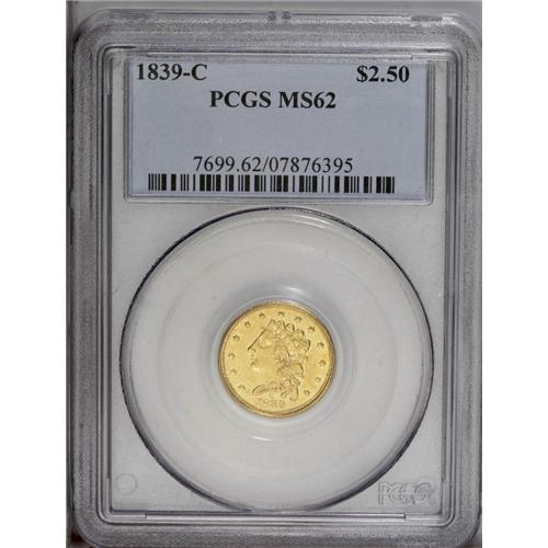 1839-C $2 1/2 MS62 PCGS. Recut 39, Breen-6150, Winter
