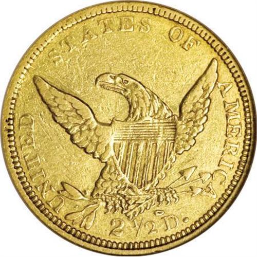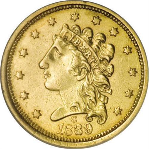 <B>1839-C $2 1/2 XF45 NGC.</B></I> Recut 39, Winter 3-C, McCloskey-C, Breen-6150, R.3. This bright example has impressive sharpness on the portrait, while the wingtips display moderate wear. Close inspection locates subdued obverse marks. Certified in a former generation holder. Only 18,140 pieces were struck for this difficult Charlotte issue, one of only two C-mint dates of the Classic quarter eagle type.<BR><BR><B>Coin Engraver:</B> William Kneass<BR><BR><b>Shipping:</b> Coins & Currency (<a target="_blank" href="http://www.heritageauctions.com/common/shipping.php">view shipping information</a>)