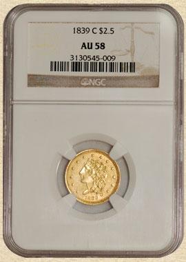 8291-01 1839-C $2.5 Classic Head AU58 NGC