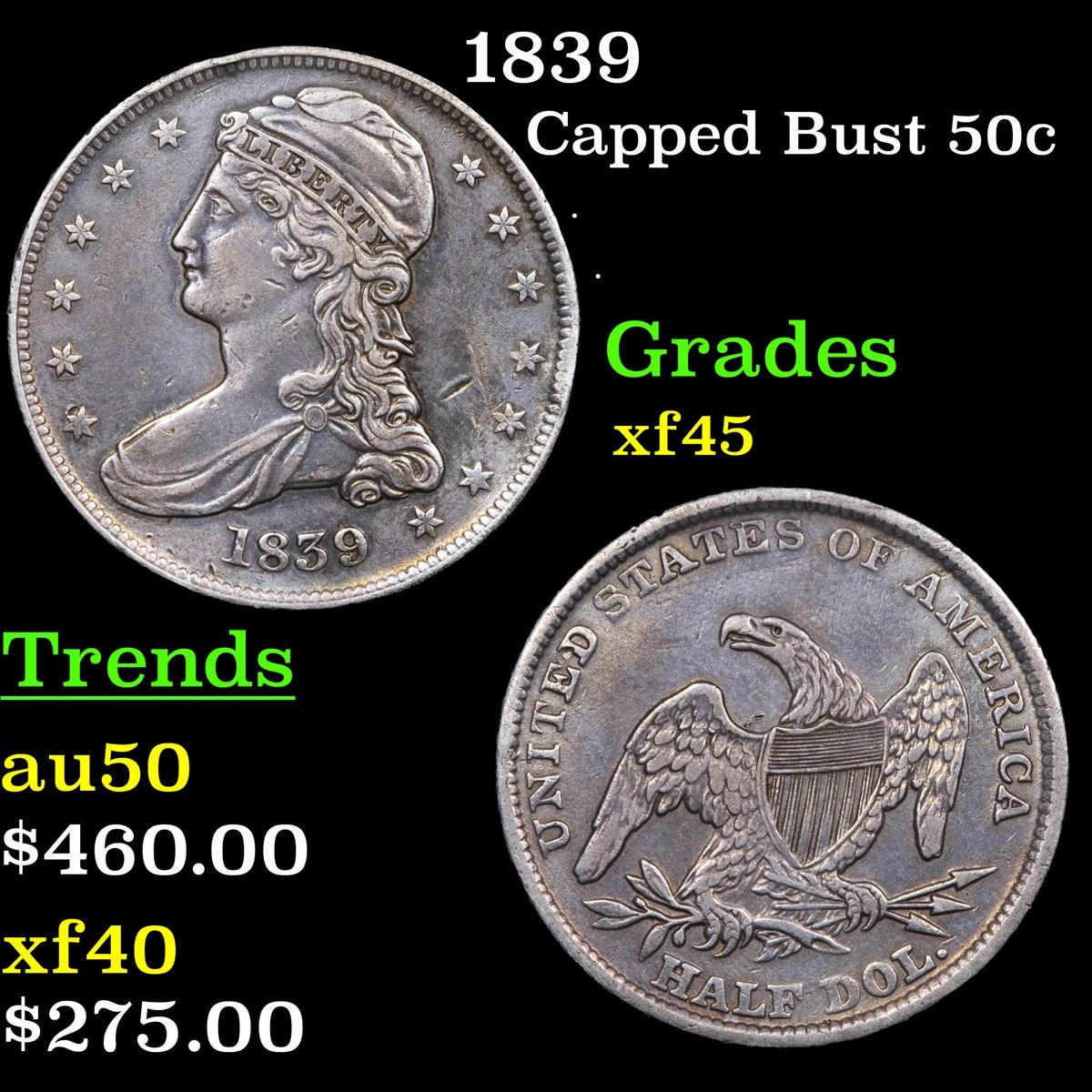 1839 Capped Bust Half Dollar 50c Grades xf+.