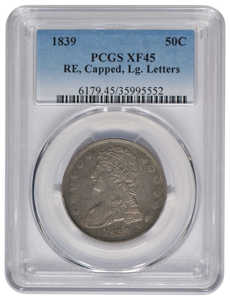 One 1839 Capped Bust Half Dollar Coin PCGS XF45.