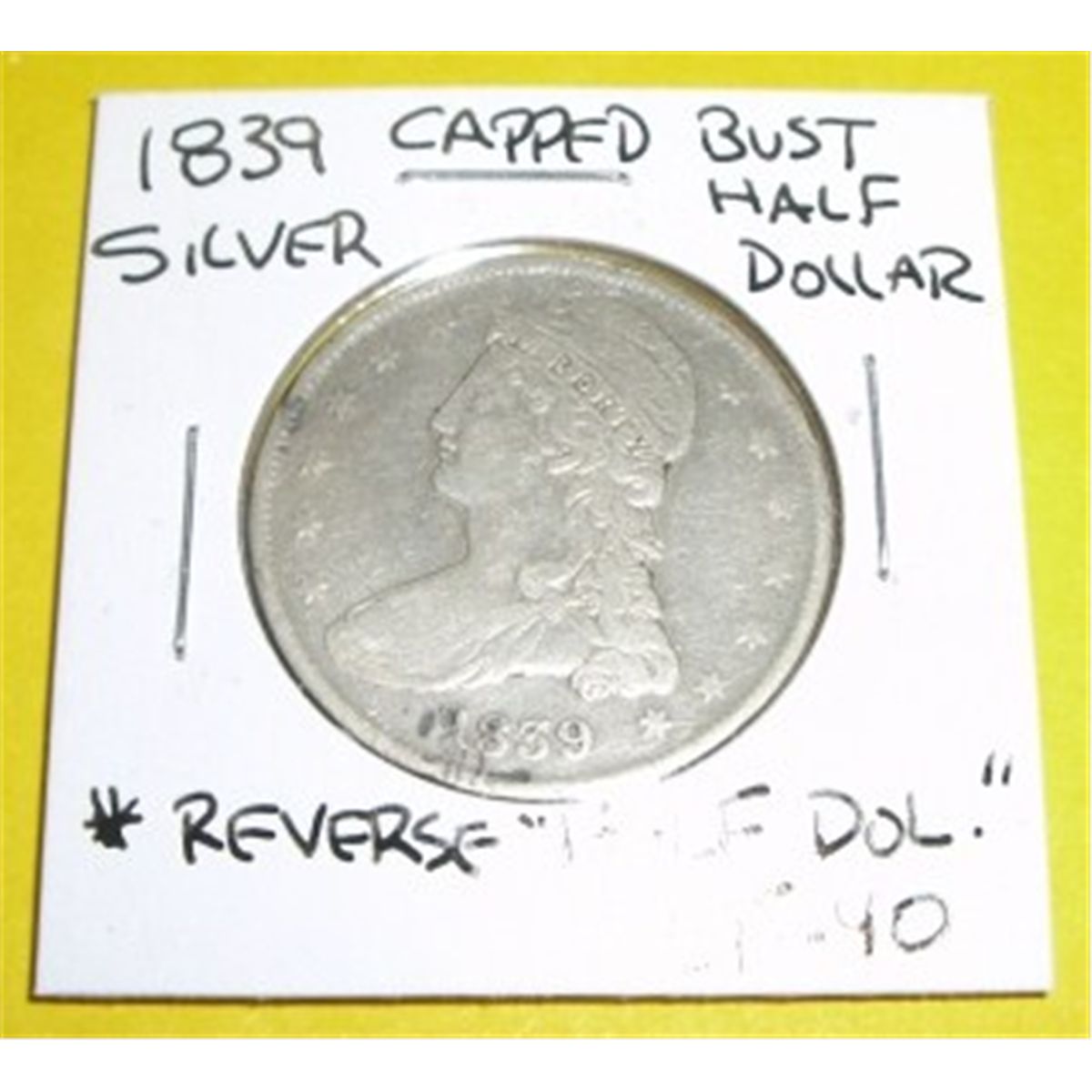 1839 Capped Bust Silver Half Dollar *EXTREMELY RARE EXTRA FINE-40 GRADE REVERSE "HALF DOL."*!! ***Coin & Currency Grades, Conditions & Values are not Safe Deposit Coins Responsibilty. Grades, Conditions & Values are determined by Consigner(s) & Buyers***