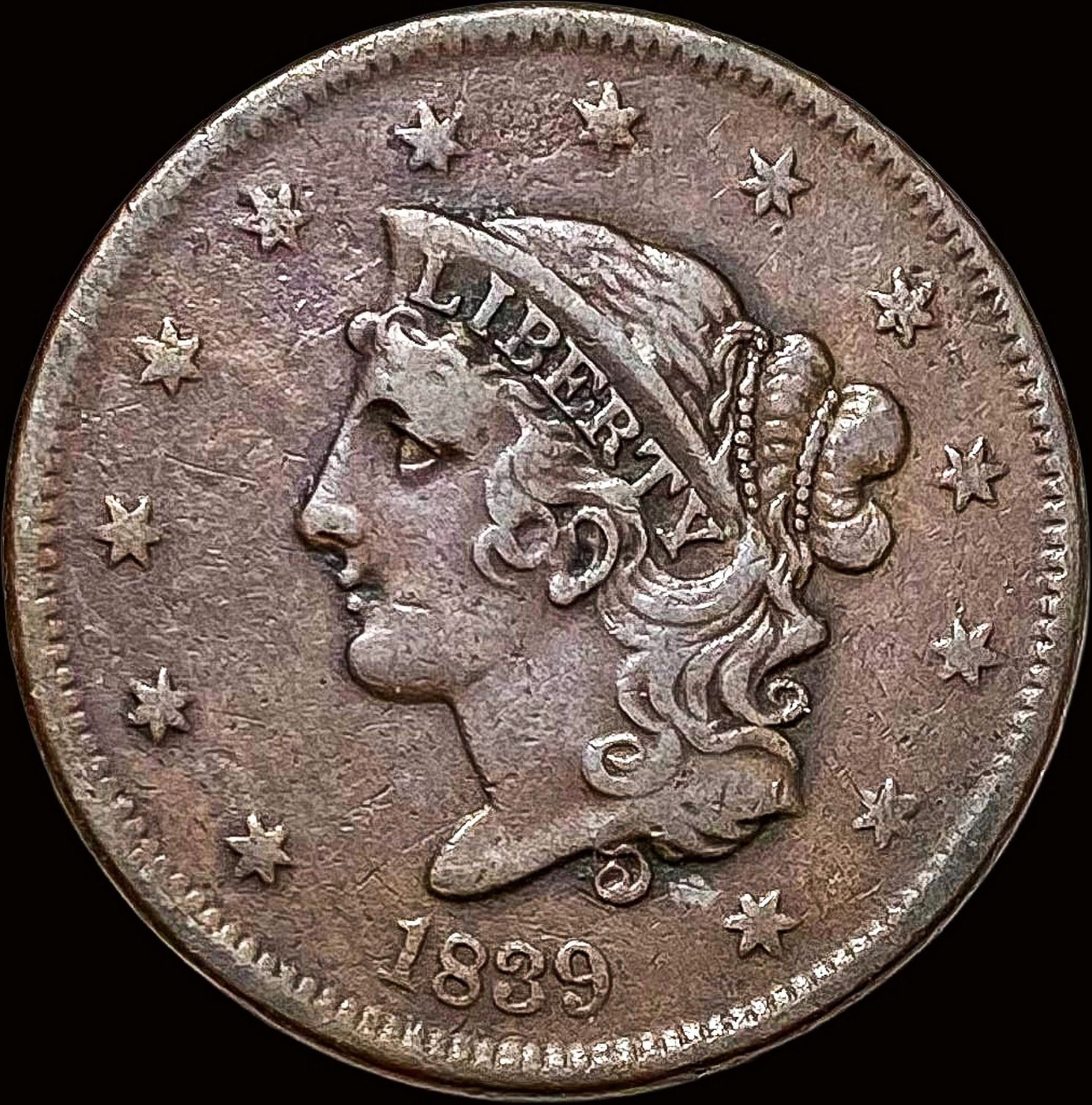 1839 Coronet Head Large Cent ABOUT UNCIRCULATED