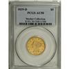 <B>1839-D $5 AU50 PCGS.</B></I> Variety 2-A. The 1839-D is interesting for several reasons. It has an obverse mintmark, a feature not found on any other date of the Liberty half eagle series. The portrait also differs from the 1840 and later version, since Liberty has an uncharacteristically sleepy appearance. Of course, numismatists take greater notice of the low mintage of 18,939 pieces. This nicely struck example has a pleasing obverse, while the reverse has marks above the left (facing) shoulder and above the eagle's head. Purchased in the 1930's at face value by Karl Stecher Sr. from coins turned in by the public as per President Roosevelt's March 9, 1933 directive. A collector's envelope accompanies, and has the comments "1839d 5.00 vf." Population: 14 in 50, 24 finer (1/07).<BR><I>From The Stecher Collection.</B></I><BR><BR><b>Shipping:</b> Coins & Currency (<a target="_blank" href="http://www.heritageauctions.com/common/shipping.php">view shipping information</a>)