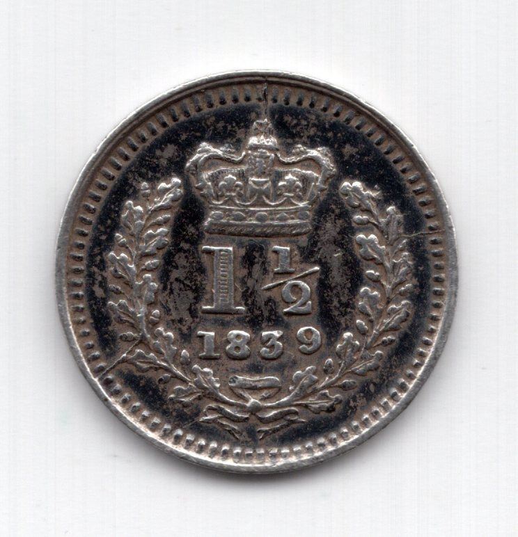 1839 Great Britain 1 1/2 Pence Silver Coin