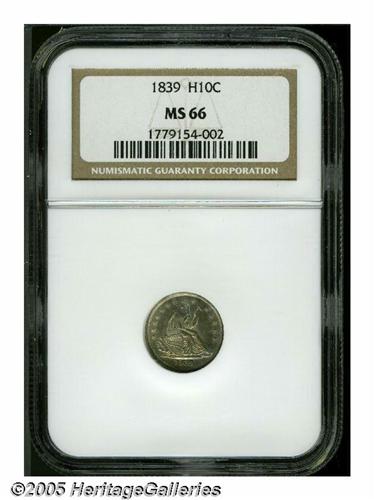 1839 H10C No Drapery MS66 NGC. V-1. Close, heavy