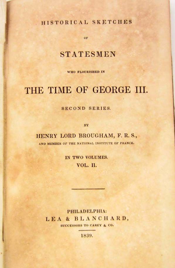 Historical Sketches of Statesmen who Flourished in the Time of George III Hardcover Book. Second Series by Henry Lord Brougham, F.R.S and Members of the National Institue of Framce. Volume 2