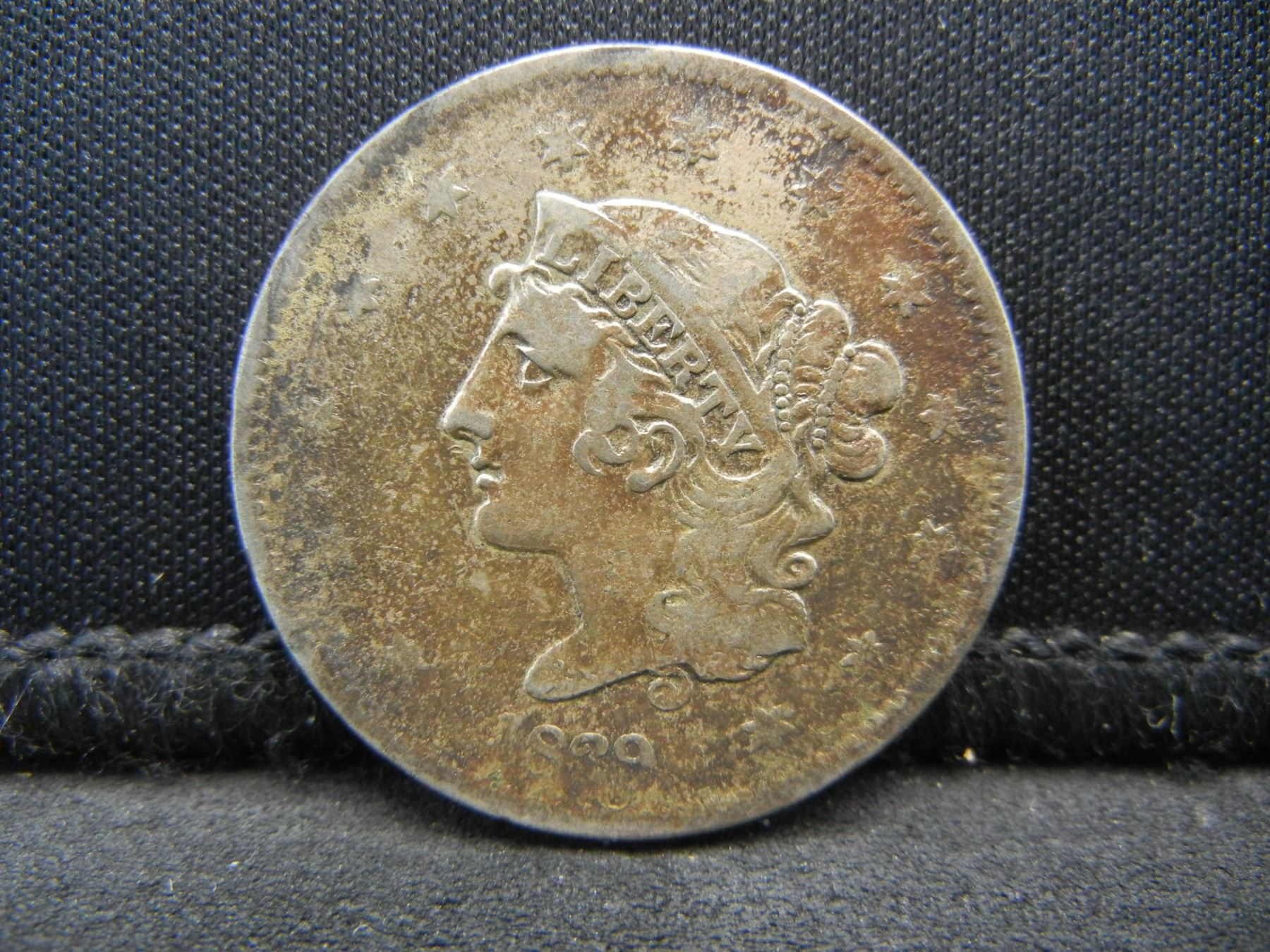 1839 Large Cent Booby Head XF Details Popular Variety