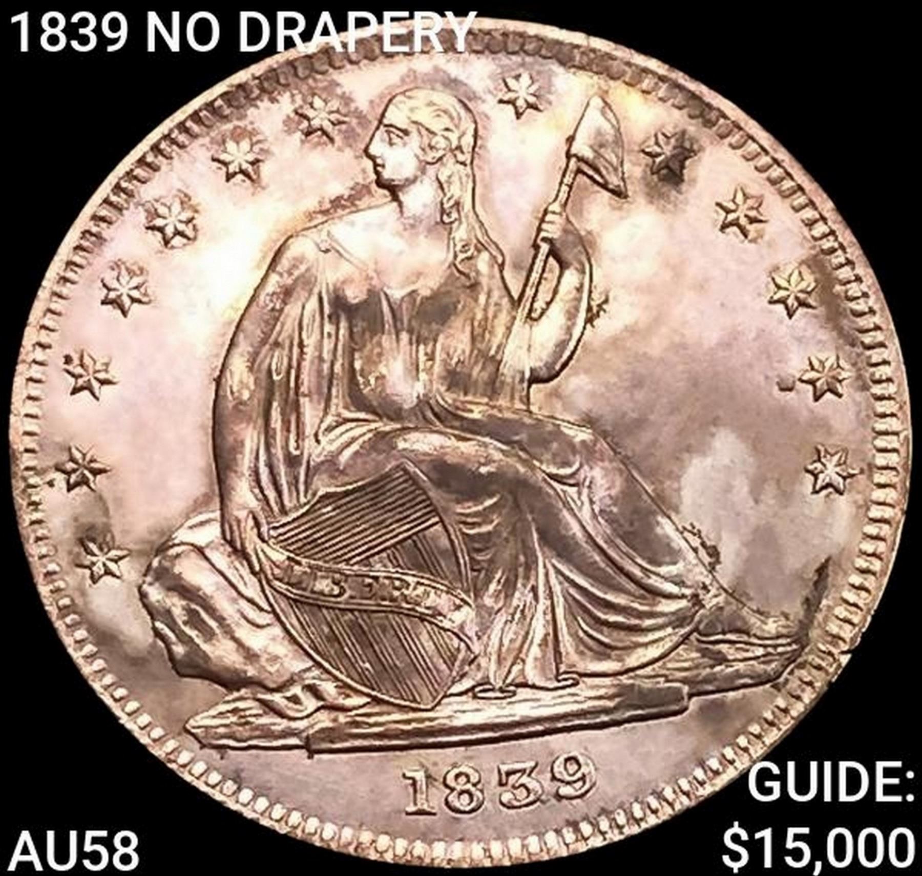1839 NO DRAPERY Seated Liberty Half Dollar CHOICE AU