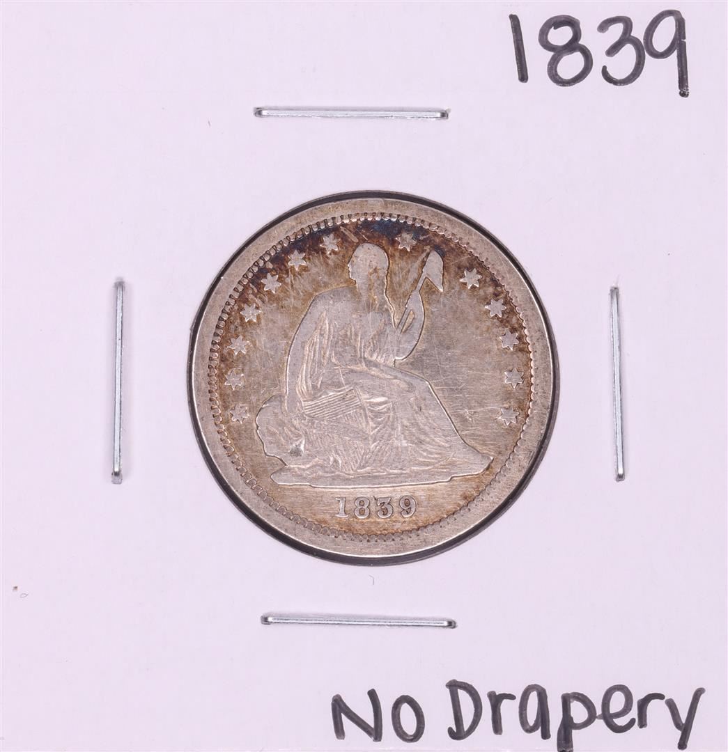One 1839 No Drapery Seated Liberty Quarter Coin.