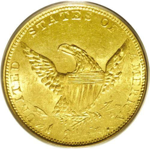 <B>1839-O<$2 1/2> MS63 PCGS.</B></I> High Date, Wide Fraction, Breen-6152, McCloskey-A, R.3. late Die State. The date is high, with the 9 higher than the 3 and nearly touching the curl. Both the numerator and denominator are slightly away from the diagonal fraction bar. This example is clearly from an extremely late state of the reverse die, and softly struck on the lower right side, apparently from die misalignment. The arrowheads are faint, the arrow shafts are incomplete, more than the usual detail is missing from the leaf clusters, the fraction and AMERICA are faint, and a bolder-than-normal die crack extends from the top of the 2 through the lowest claw tip, the leftmost leaf pair, the I of UNITED and to the rim. Bold luster radiates from the pretty, green-gold surfaces, and the right-side obverse stars are also weaker than the left-side stars. A popular type coin. Population: 7 in 63, 5 finer (7/06).