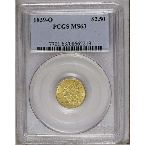 1839-O $2 1/2 MS63 PCGS. High Date, Wide Fraction, Bre