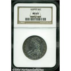 <table><tbody><tr><td><table> <TR><TD width="100%"><TABLE cellSpacing=1 cellPadding=3 width="100%" border=0><TBODY><TR><TD width="100%" bgColor=#79735c><FONT face=arial color=#ffffff size=3><B>Description</B> </FONT></TD></TR><TR><TD width="100%" bgColor=#ffffff><FONT face=arial size=2><B>1839-O 50C MS65 NGC.</B></I> The New Orleans Mint opened in 1838 and produced its first Half Dollars, 20 proof examples dated 1838-O, in January of 1839. A further 178,976 coins dated 1839-O were delivered throughout the remaining months, making this issue is the only collectible O-mint half dollar of the 1838-1839 Reeded Edge type. Breen asserts that the 1839-O was extensively hoarded by the public as the first business strike half dollar from the New Orleans Mint. If this is true, then the majority of these coins were retrieved from circulation because this issue is a significant rarity in Mint State. The present satiny-textured Gem is mostly brilliant through the centers and outlined in speckled coppery-gold toning. There are no unsightly surface marks and the strike is well executed, even in the peripheral areas. For those interested in this coin's die variety, we note repunching on the mintmark and myriad fine cracks (as struck) in the peripheral areas. Population: 6 in 65, 3 finer (11/03). </FONT></TD></TR></TBODY></TABLE></TD></TR></TBODY></TABLE><BR><A name=PricesRealized></A><TABLE cellSpacing=0 cellPadding=0 width="100%" bgColor=#000000 border=0><TBODY><TR><TD width="100%"><TABLE cellSpacing=1 cellPadding=3 width="100%" border=0><TBODY><TR><TD width="100%" bgColor=#79735c><A name=PR><FONT face=arial color=#ffffff size=3><B>Previous Prices from Heritage Auctions</B> </FONT></A></TD></TR><TR><TD bgColor=#f6f6ed><TABLE cellSpacing=0 cellPadding=0 width="100%" border=1><TBODY><TR><TD align=middle width="33%"><B>Date</B></TD><TD align=middle width="33%"><B>Service</B></TD><TD align=middle width="33%"><B>Price</B></TD></TR><TR bgColor=whitesmoke><TD width="33%"><B>03/01/2000</B></TD><TD width="33%">NGC</TD><TD width="33%">$20,125.00</TD></TR></TBODY></TABLE></TD></TR><TR><TD bgColor=#ffffff><FONT face=arial size=1 ?>PLEASE NOTE: All prices realized reflect the final hammer price PLUS the buyer's premium in auctions that charge a buyer's premium. Each item has a notation at the top of the listing indicating whether that lot included a buyer's premium. Example: A item that sells with a final hammer price of $100 and a 20% buyer's premium will display with a price realized of $120. All information listed is intended to be as accurate as possible, but errors are possible. Please use this guide carefully and inform us of any inaccuracies. </FONT></TD></TR></TBODY></TABLE></TD></TR></TBODY></TABLE><BR><TABLE cellSpacing=0 cellPadding=0 width="100%" bgColor=#000000 border=0><TBODY><TR><TD width="100%"><TABLE cellSpacing=1 cellPadding=3 width="100%" border=0><TBODY><TR><TD width="100%" bgColor=#79735c colSpan=6><FONT face=arial color=#ffffff size=3><B>Price Guide*</B> </FONT></TD></TR><TR bgColor=#f6f6ed><TD align=middle><B>Grade</B> </TD><TD align=middle><B>Coin World<BR>(Trends)</B> </TD><TD align=middle><B>Numismedia<BR>Retail</B> </TD><TD align=middle><B>Numismedia<BR>Wholesale</B> </TD><TD align=middle><B>Coin<BR>Universe</B> </TD><TD align=middle><B>Heritage<BR>Value Index</B> </TD></TR><TR bgColor=#ffffff><TD align=middle>64</TD><TD align=right>$11,500.00</TD><TD align=right>---</TD><TD align=right>$10,240.00</TD><TD align=right>$13,200.00</TD><TD align=right>$8,283.33</TD></TR><TR style="FONT-WEIGHT: bold" bgColor=#cccfdd><TD align=middle>65</TD><TD align=right>---</TD><TD align=right>---</TD><TD align=right>$20,125.00</TD><TD align=right>---</TD><TD align=right>---</TD></TR><TR bgColor=#ffffff><TD align=middle>66</TD><TD align=right>---</TD><TD align=right>---</TD><TD align=right>---</TD><TD align=right>---</TD><TD align=right>---</TD></TR><TR bgColor=#ffffff><TD colSpan=6><FONT size=1>*All information listed is intended to be as accurate as possible, but errors are possible. No item may be returned or refused based on this information which is provided as a service to our customers. You should contact each pricing source directly to determine the accuracy of this information. </FONT></TD></TR></TBODY></TABLE></TD></TR></TBODY></TABLE><BR><TABLE cellSpacing=0 cellPadding=0 width="100%" bgColor=#000000 border=0><TBODY><TR><TD width="100%"><TABLE cellSpacing=1 cellPadding=3 width="100%" border=0><TBODY><TR><TD width="100%" bgColor=#79735c><FONT face=arial color=#ffffff size=3><B>Population Guide</B> </FONT></TD></TR><TR bgColor=#ffffff><TD align=middle><!-- Begin Output of Population Grid--><TABLE cellSpacing=0 cellPadding=0 width="100%" border=0><TBODY><TR><TD vAlign=center><TABLE cellSpacing=0 width="100%" border=1 cellsadding="3"><TBODY><TR><TD vAlign=center><TABLE cellSpacing=0 cellPadding=3 width="100%" border=1><TBODY><TR><TD vAlign=center align=middle bgColor=#f0f1e8 colSpan=2 <CENTER><FONT face=Arial size=2><B>PCGS Pop </B></FONT><CENTER></CENTER></TD><TD vAlign=center align=middle bgColor=#f0f1e8 colSpan=2><CENTER><FONT face=Arial size=2><B>NGC Pop</B></CENTER></FONT></TD></TR><TR><TD vAlign=center><FONT face=Arial size=2>(65)</FONT> </TD><TD vAlign=center align=right><FONT face=Arial size=2>1</FONT> </TD><TD vAlign=center><FONT face=Arial size=2>(65)</FONT> </TD><TD vAlign=center align=right><FONT face=Arial size=2>6</FONT> </TD></TR><TR><TD vAlign=center><FONT face=Arial size=2>(>65)</FONT> </TD><TD vAlign=center align=right><FONT face=Arial size=2>4</FONT> </TD><TD vAlign=center><FONT face=Arial size=2>(>65)</FONT> </TD><TD vAlign=center align=right><FONT face=Arial size=2>3</FONT> </TD></TR></TBODY></TABLE></TD></TR></TBODY></TABLE></TD></TR></TBODY></TABLE><!-- End Output of Population Grid--></TD></TR></TBODY></TABLE></TD></TR></TBODY></TABLE><BR><TABLE cellSpacing=0 cellPadding=0 width="100%" bgColor=#000000 border=0><TBODY><TR> <font color='#000000'><span style='background-color: #FF