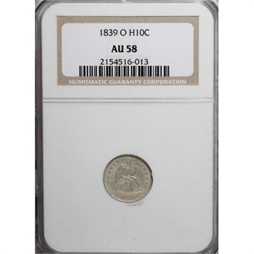 <B>1839-O H10C No Drapery AU58 NGC.</B></I> NGC Census: (11/32). PCGS Population (13/17). Mintage: 1,000,000. Numismedia Wsl. Price for NGC/PCGS coin in AU58: $250. (#4320)<BR><BR><B>Coin Engraver:</B> Christian Gobrecht<BR><BR><b>Shipping:</b> Coins & Currency (<a target="_blank" href="http://www.heritageauctions.com/common/shipping.php">view shipping information</a>)