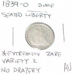 1839-O SEATED LIBERTY DIME VARIETY 2 NO DRAPERY *EXTREMELY RARE AU HIGH GRADE - NICE COIN*!! ***Coin, Currency & All Items Listed in this auction - Grades, Conditions and Values are not Safe Deposit Coins LLC Responsibilty. Grades, Condition and Values are determined by Consigner(s) & Buyers ONLY***
