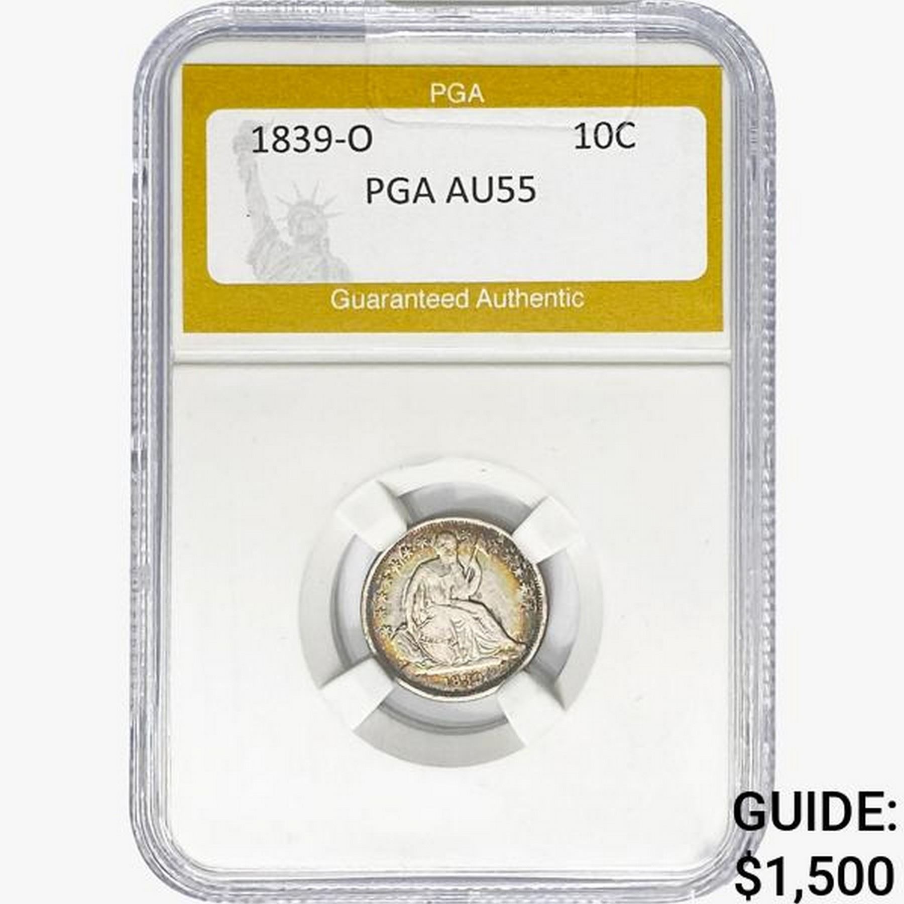 1839-O Seated Liberty Dime PGA AU55