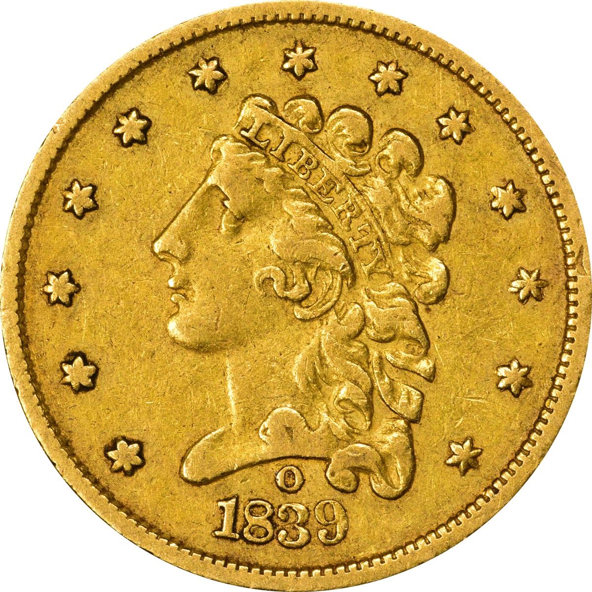 Warm medium gold with a trace of olive toning on the evenly worn but nearly mark-free surfaces This distinctive issue represents the first gold coinage from New Orleans, the only Classic Head issue from the New Orleans Mint in any denomination, and the only New Orleans quarter eagle with an obverse mintmark. A worthwhile addition to any collection. PCGS #7701
