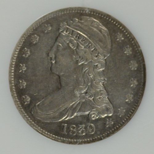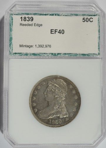 1839 REEDED EDGE HALF DOLLAR, PCI GREEN LABEL, EF-40