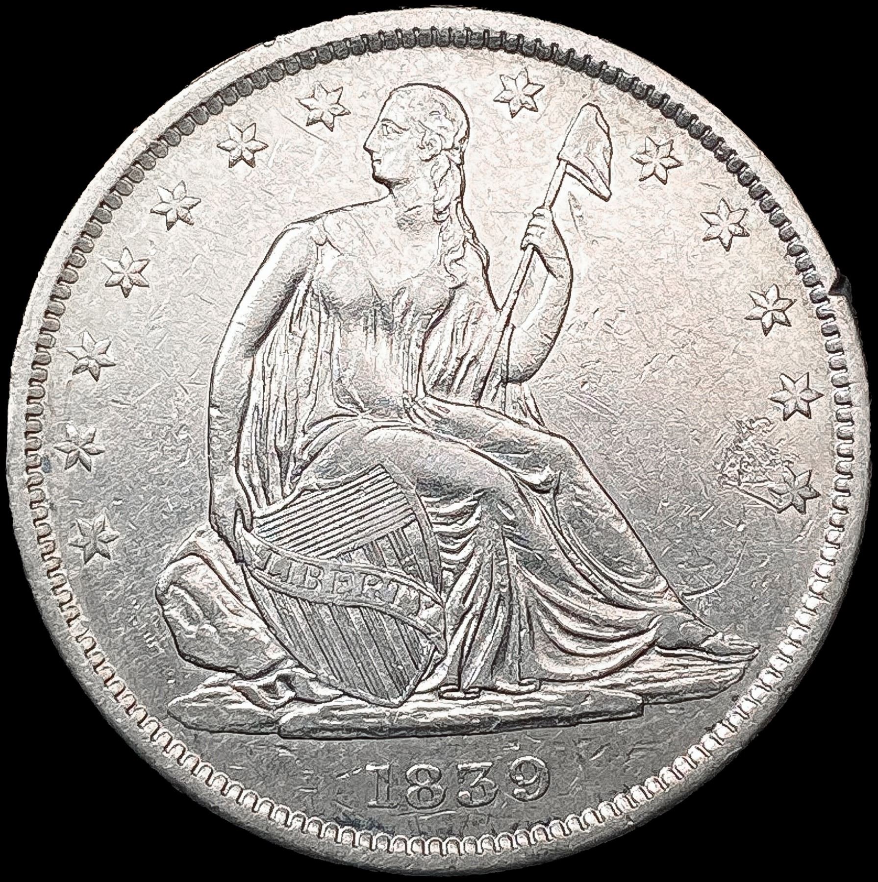 1839 Seated Liberty Half Dollar CLOSELY UNCIRCULAT