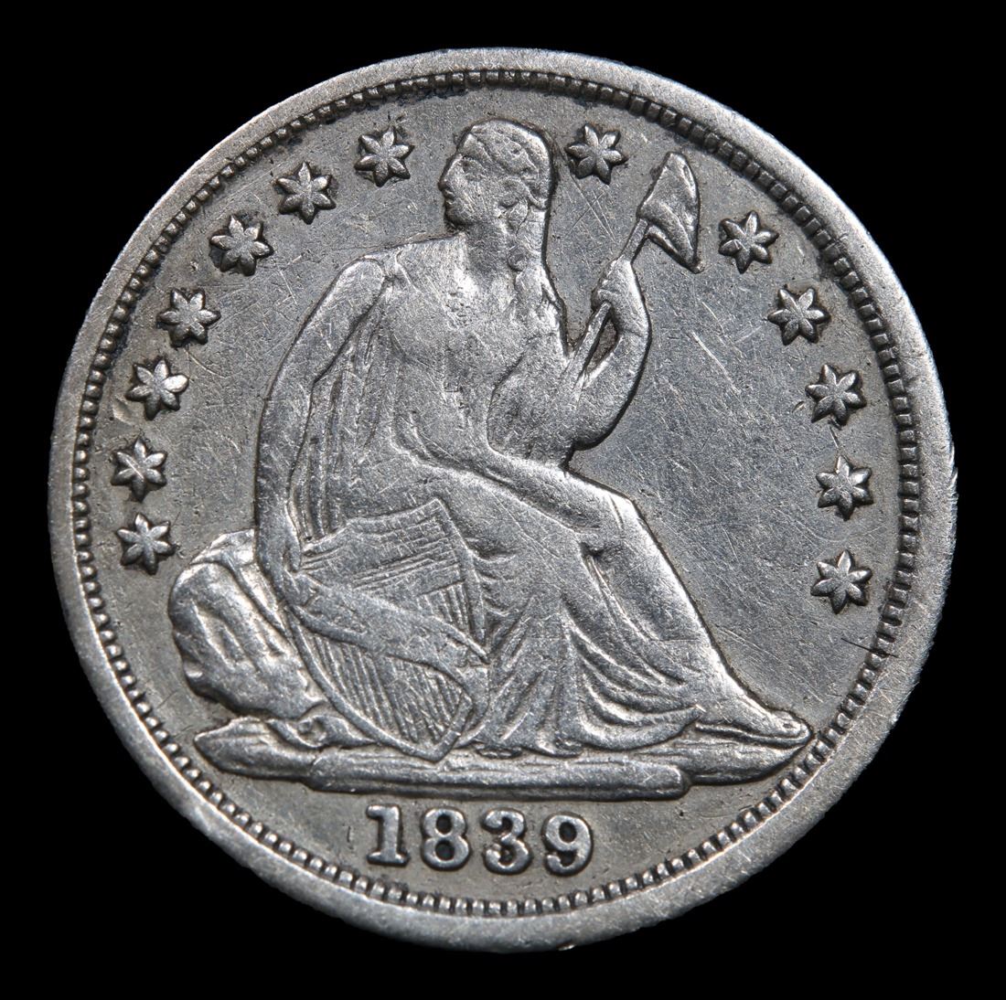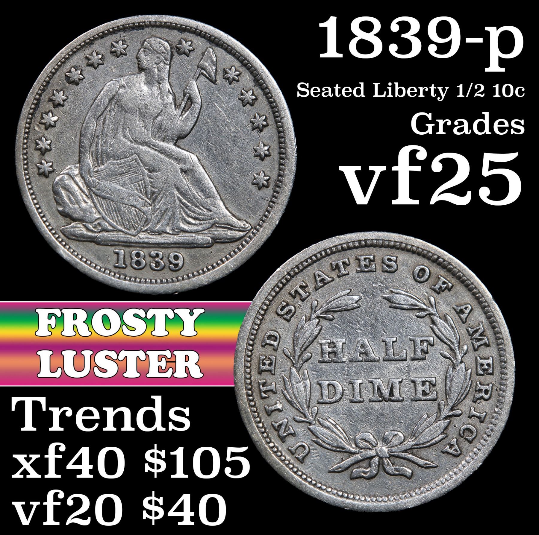 1839-p Seated Liberty Half Dime 1/2 10c Grades vf+.