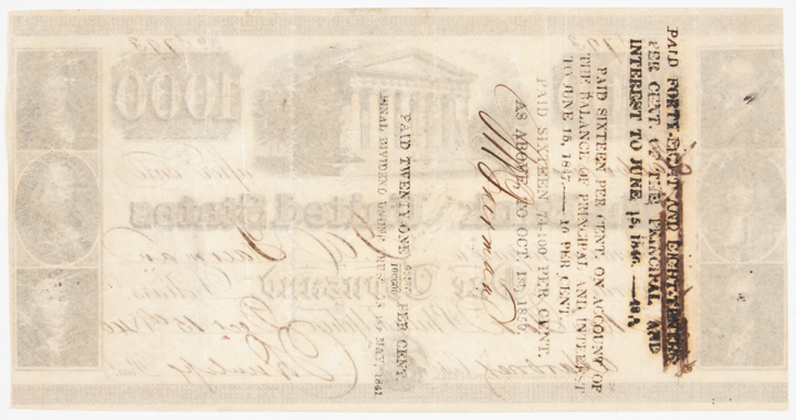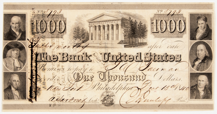 Philadelphia, PA. The Bank of the United States. One Thousand Dollars. December 15, 1840. Choice Very Fine.