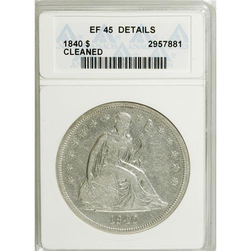 1840 $1 --Cleaned--ANACS. XF45 Details. NGC Census: