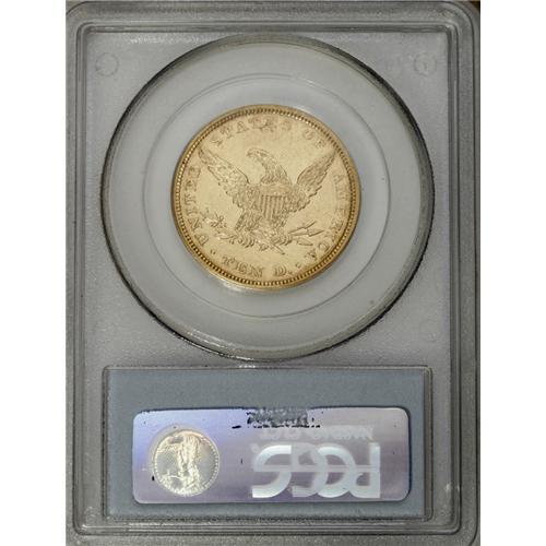 1840 $10 AU50 PCGS. Despite light, even wear, the ambe