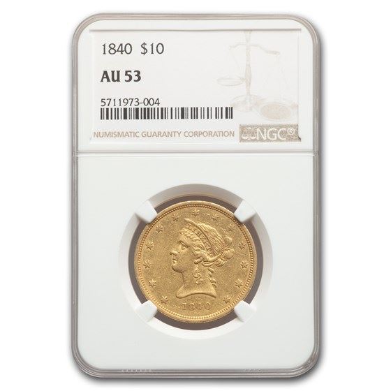 One piece 1840 $10 Liberty Gold Eagle AU-53 NGC