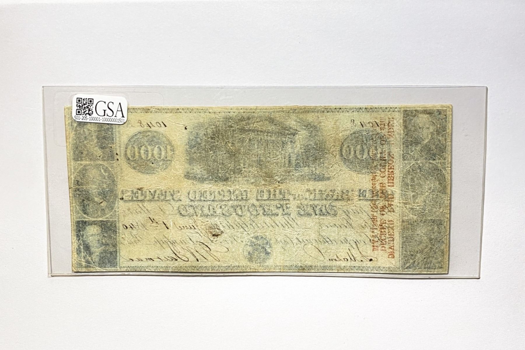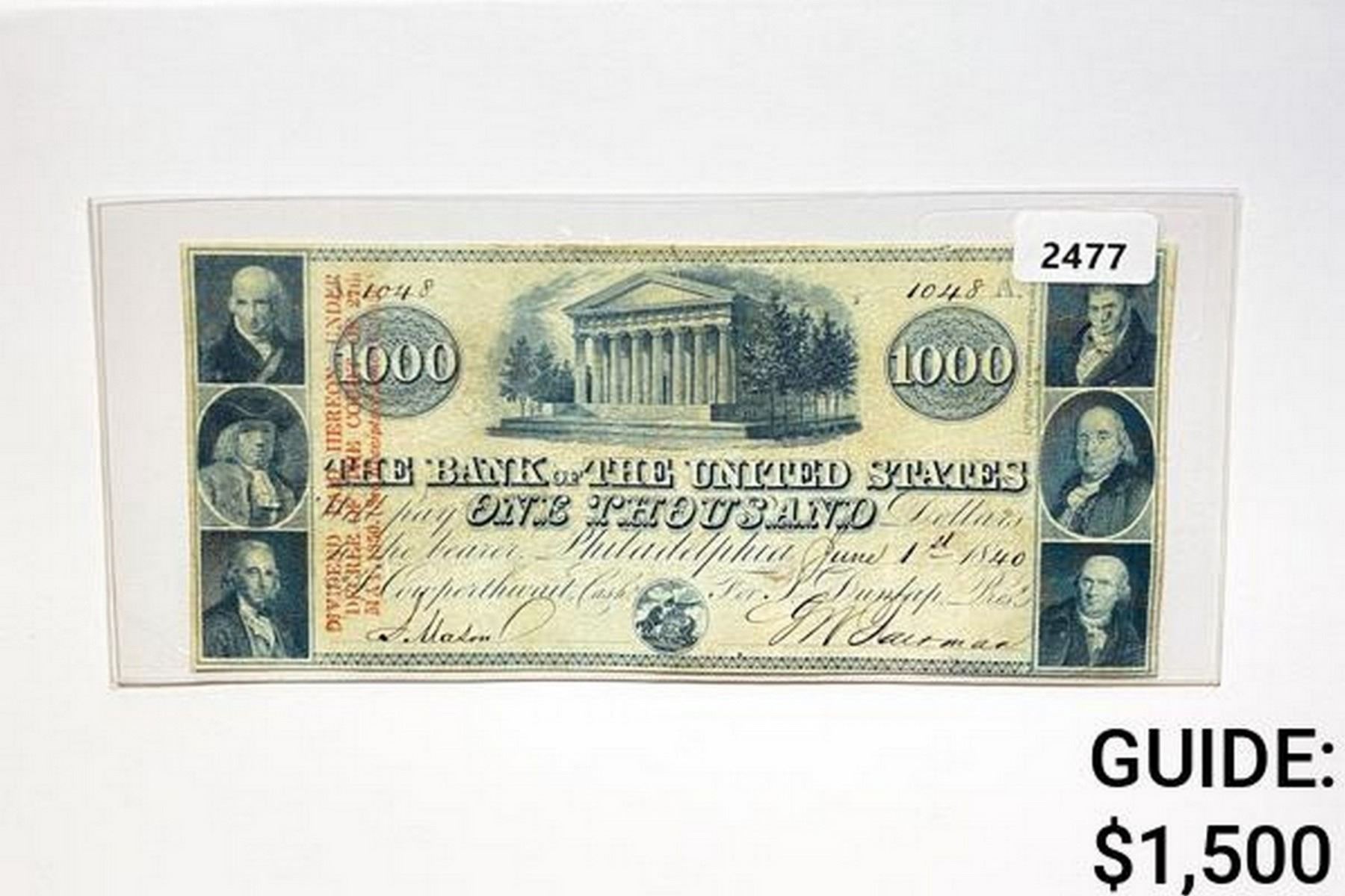 1840 $1000 Bank Of U.S. Philadelphia Bank Note