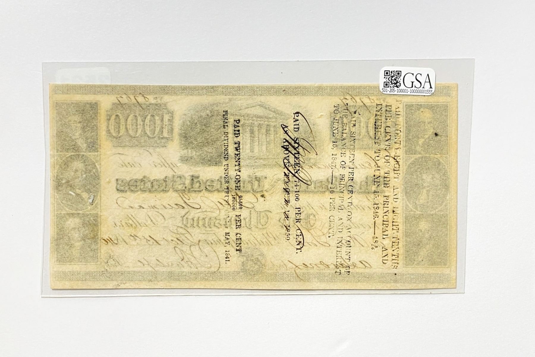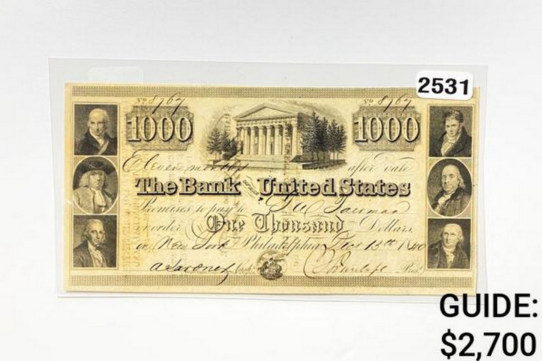 1840 $1000 Bank of U.S. Bank Note-Philadelphia