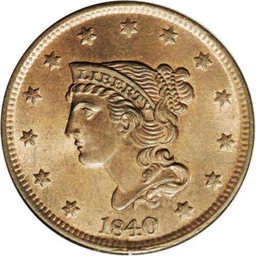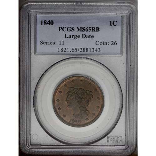 1840 1C Large Date MS65 Red and Brown PCGS. N-8, R.1.