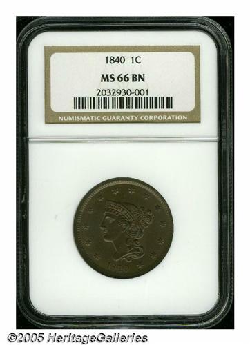 1840 1C Large Date MS66 Brown NGC. N-8, R.1. A ma