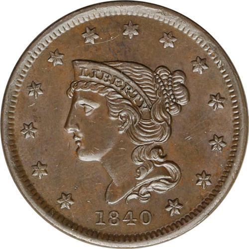 1840 1C Small Date MS63 Brown NGC. N-1, R.2. The smoot 1840[1C] Small Date. N-1, R.2. MS63 Brown NGC